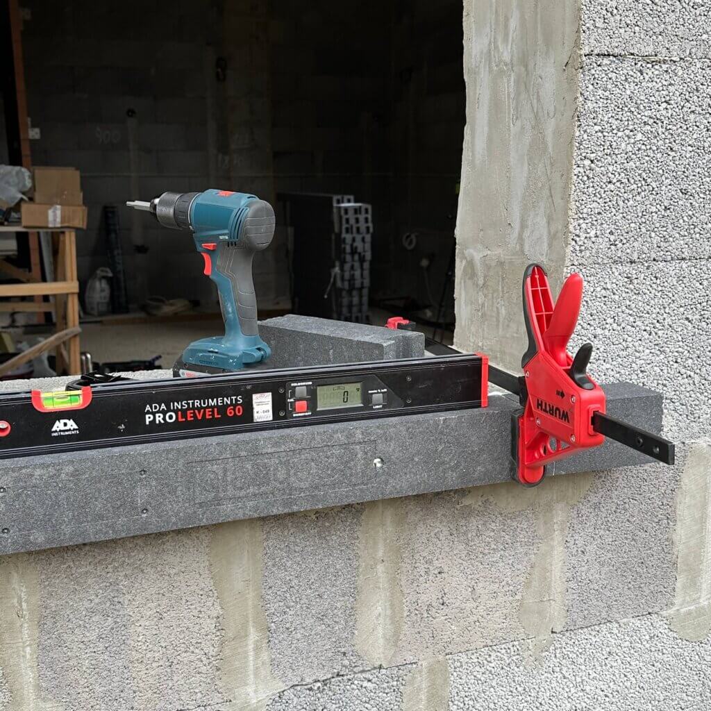 Профиль выносного монтажа BLAUGELB TRIOTHERM+ 70х85х1175мм крепим к проему с помощью гибрид полимерного герметика BLAUGELB HYBRID POLYMER POWER FIX и винтов FK-T30 7,5х212мм.